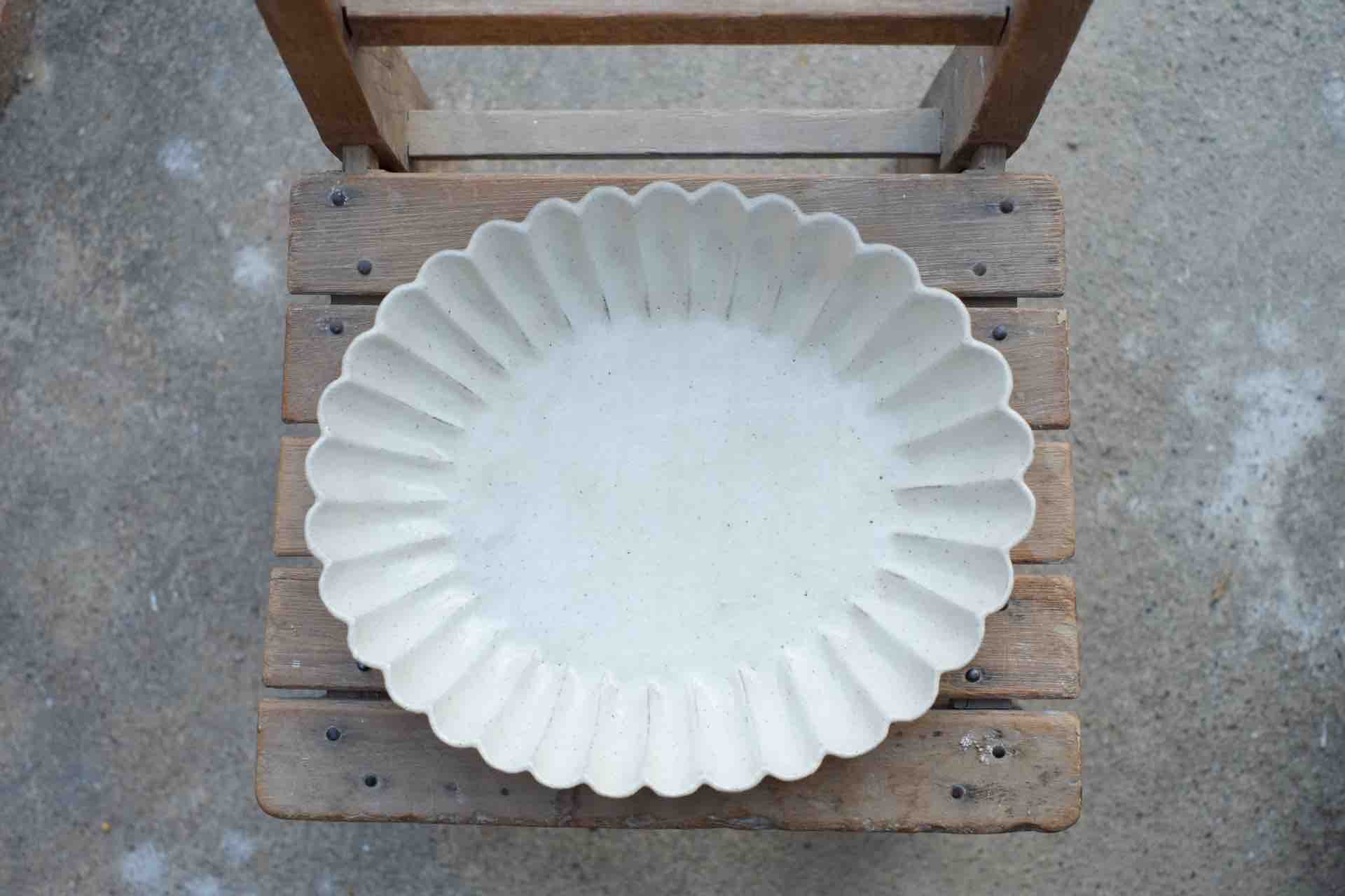 粉引の楕円輪花皿(大)