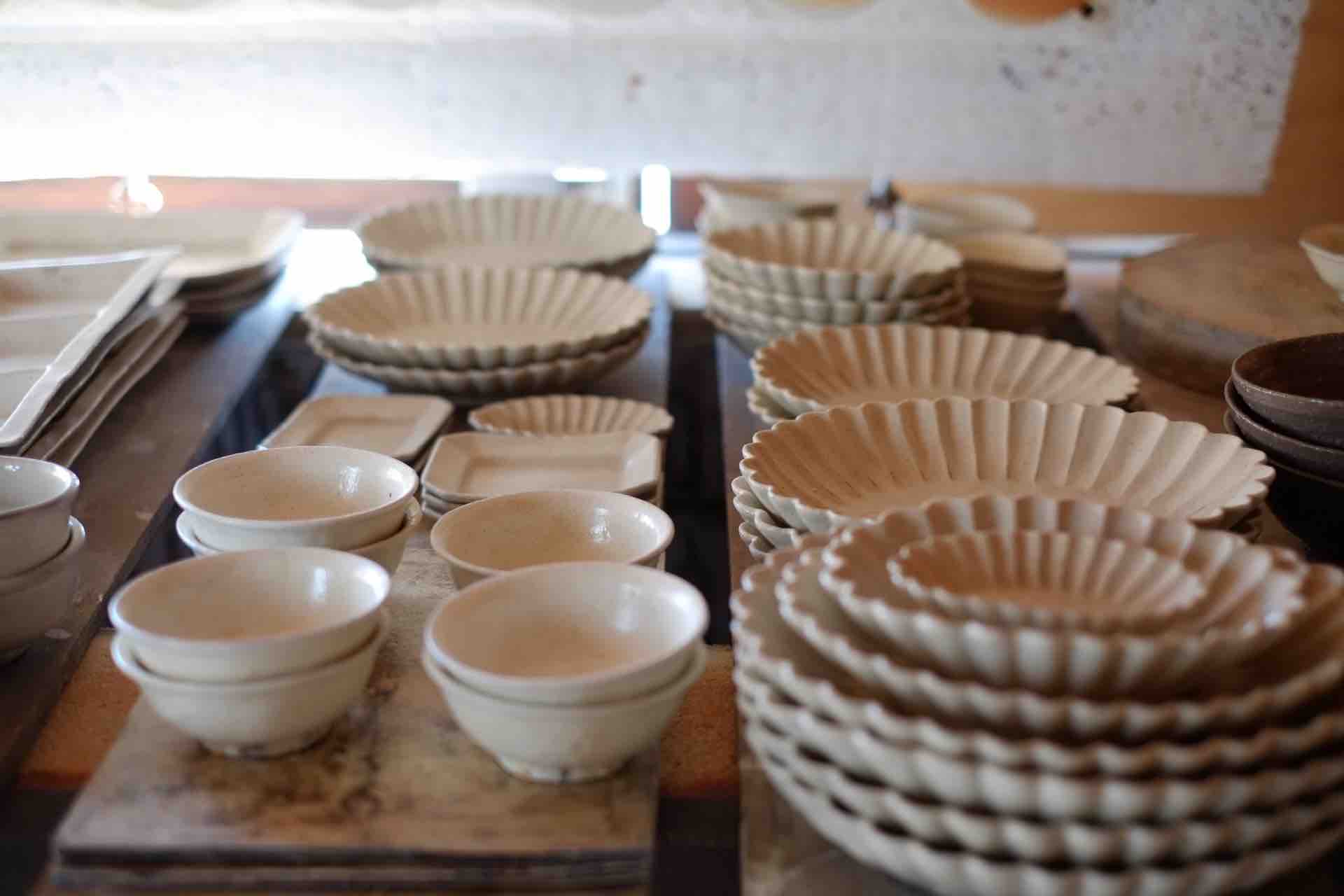 鈴華窯は得意の粉引の器を中心に取り揃えております。