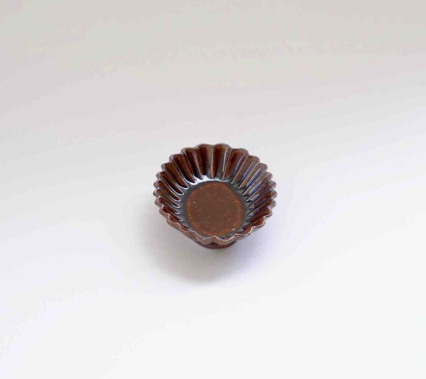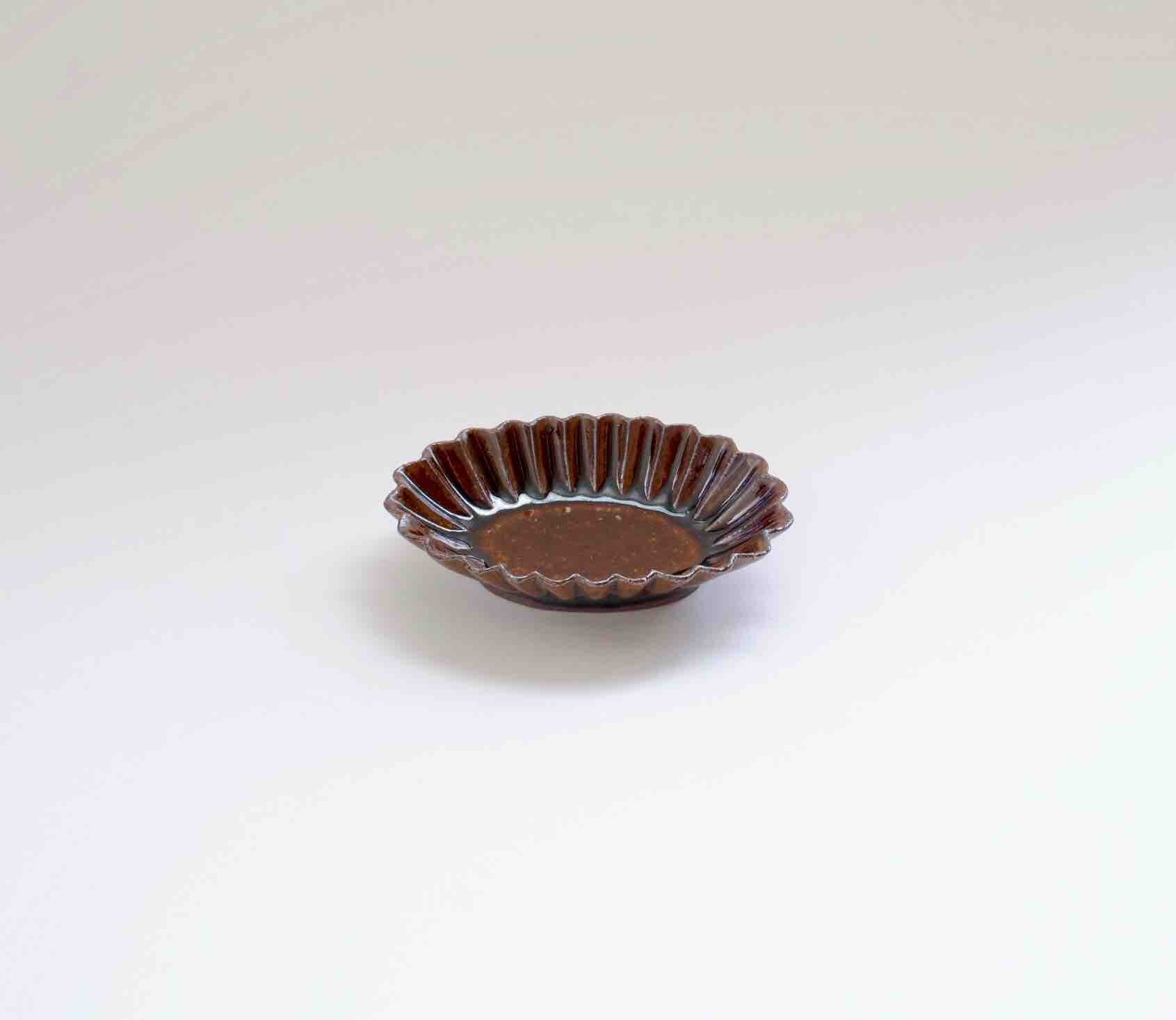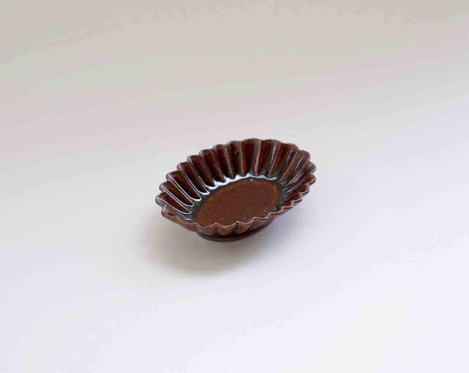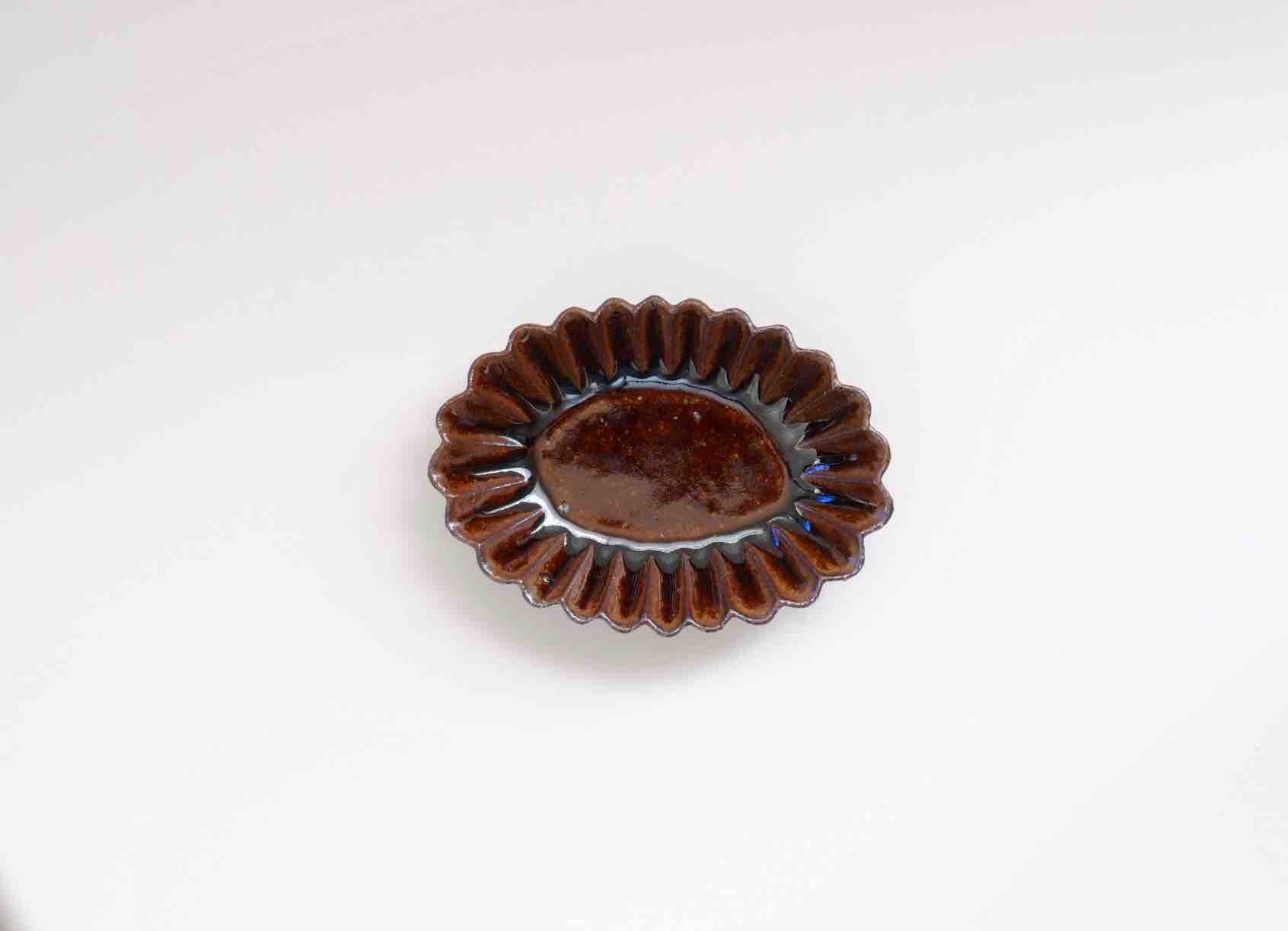 青白土楕円輪花皿とマメ鉢と鉄釉楕円マメ鉢